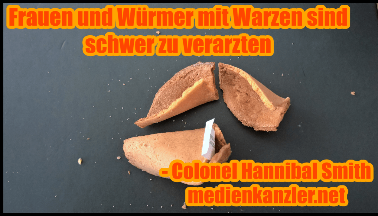 „Frauen und Würmer mit Warzen sind schwer zu verarzten“, sinnierte Colonel Hanibal Smith vom A-Team in der Rolle des chinesischen Apothekers einmal.
